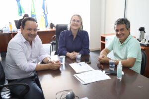 A presidente da Câmara de Dourados, Liandra Brambilla (PSDB), recebeu nesta terça-feira (7) o secretário adjunto da Casa Civil do Governo do Estado, Waltinho Carneiro, e o vereador de Campo Grande, Landmark Rios (PT). No encontro, a presidente da Casa debateu sobre a possibilidade de futuras parcerias do legislativo de Dourados e da capital com o Governo do Estado.